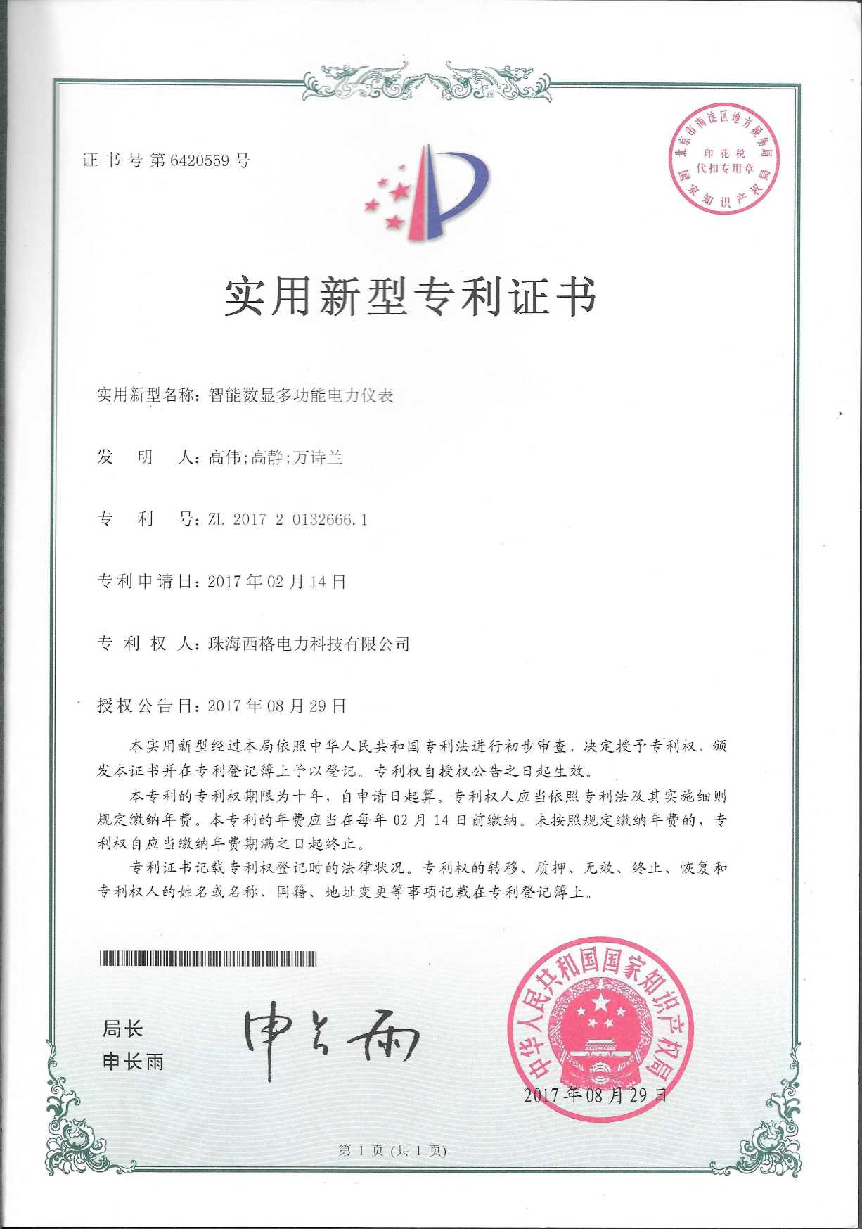 专利证书